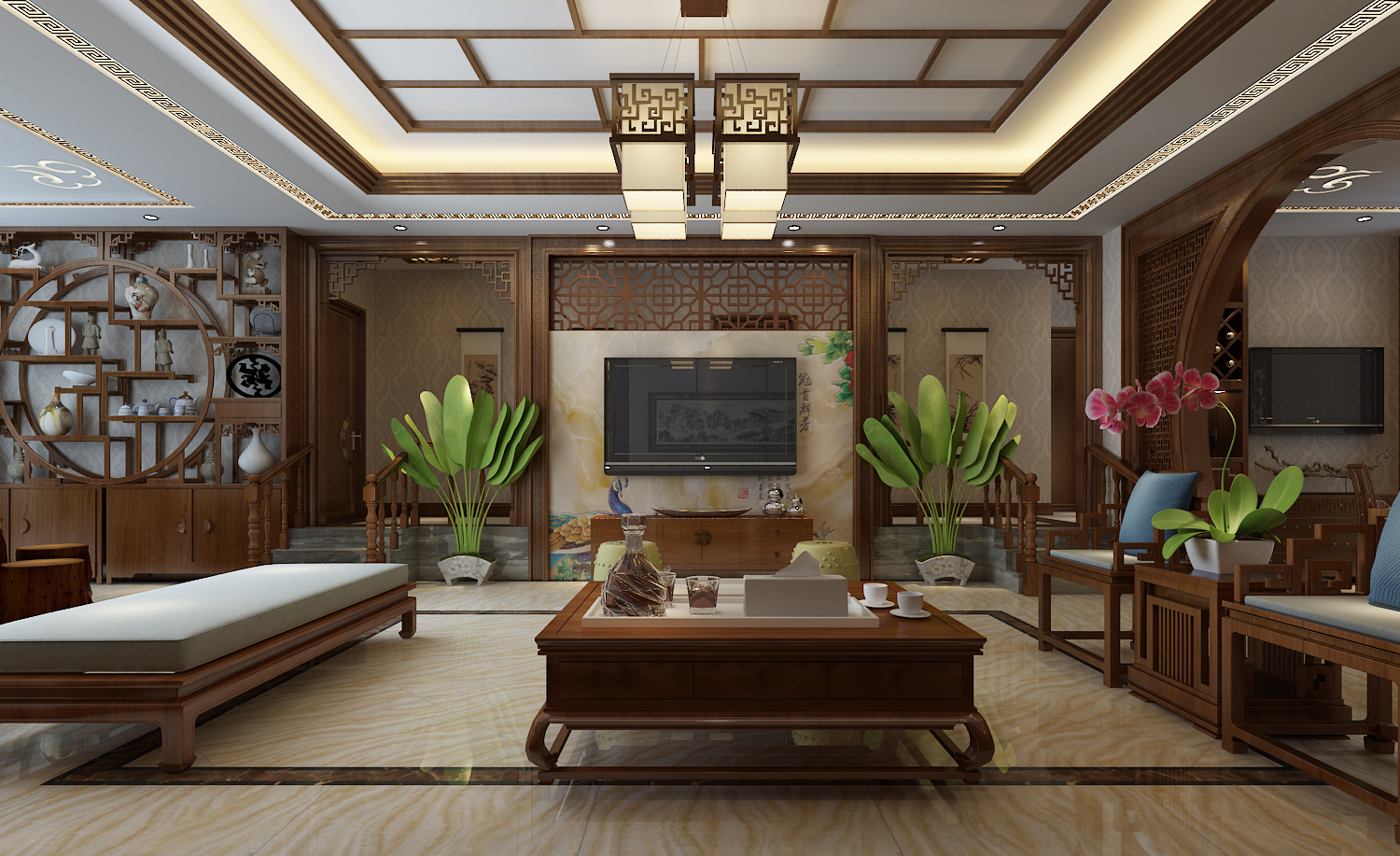 中式風(fēng)格追求的是一種修身養(yǎng)性的生活境界,中國傳統(tǒng)室內(nèi)裝飾藝術(shù)的特點(diǎn)是總體布局對(duì)稱均衡,端正穩(wěn)健,而在裝飾細(xì)節(jié)上崇尚自然情趣,花鳥、魚蟲等精雕細(xì)琢,富于變化,充分體現(xiàn)出中國傳統(tǒng)美學(xué)精神。